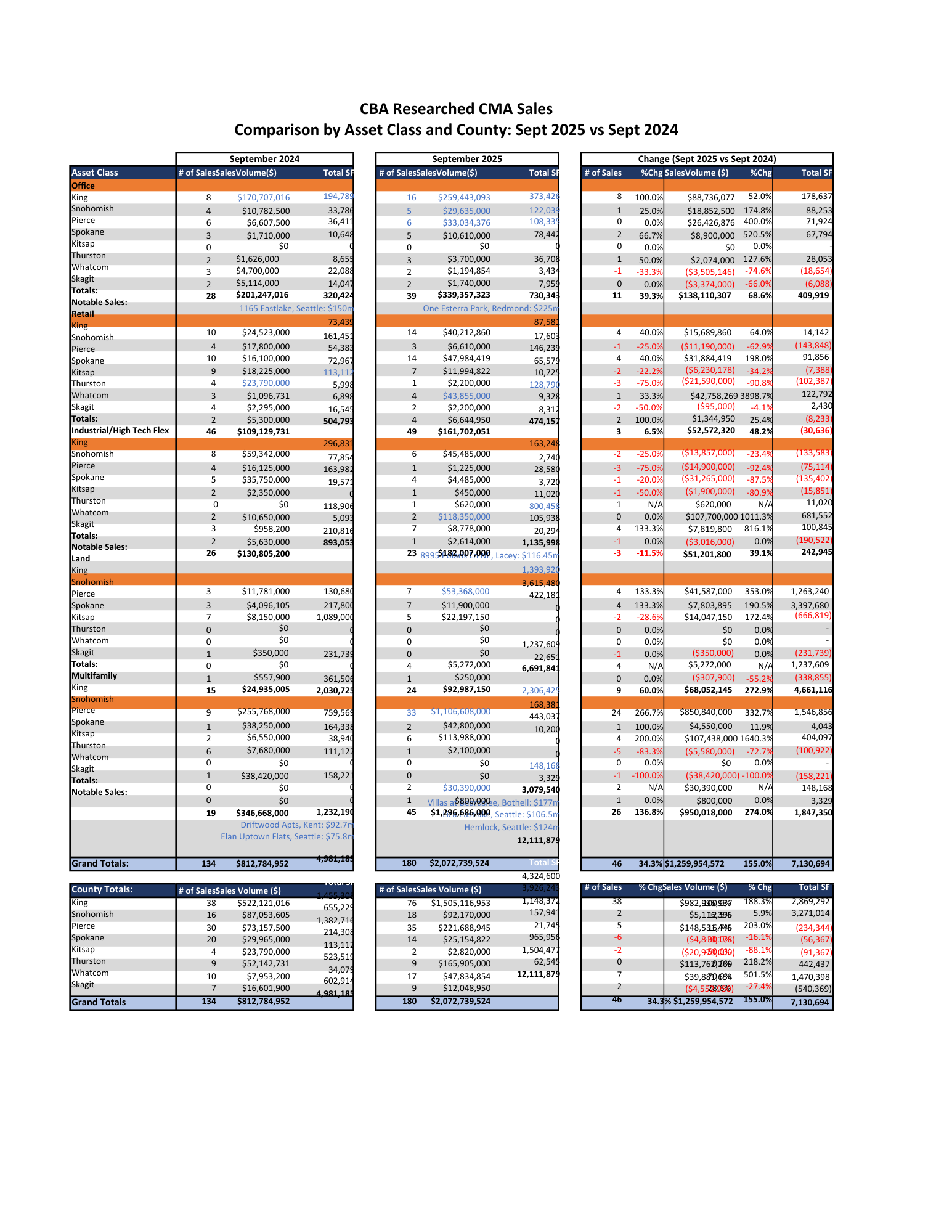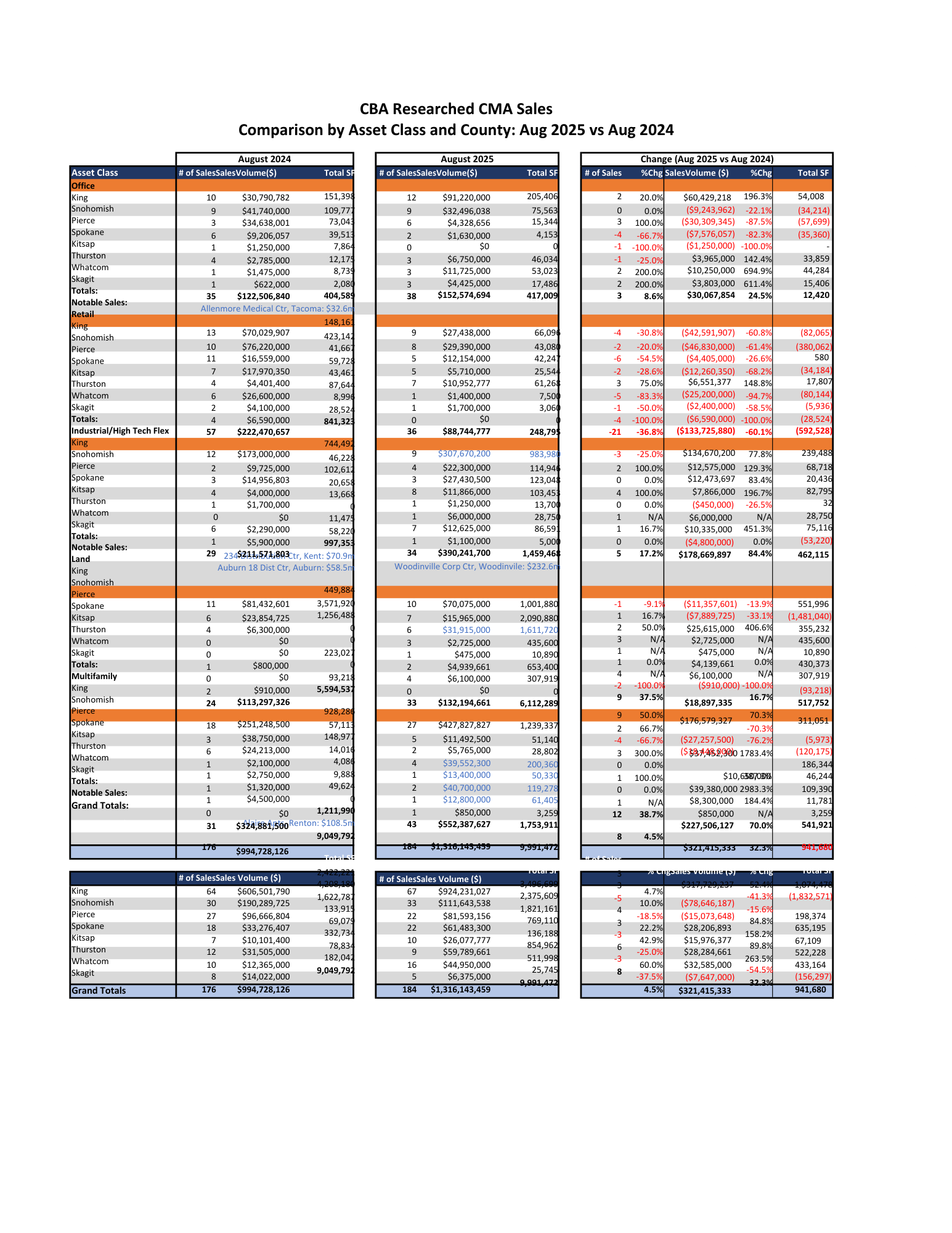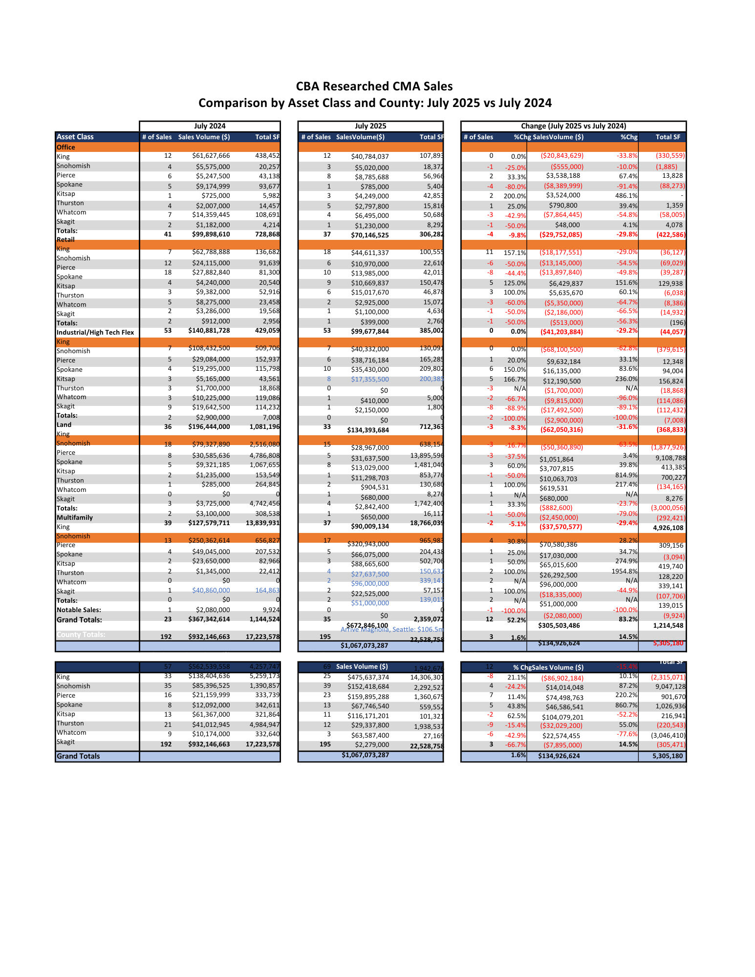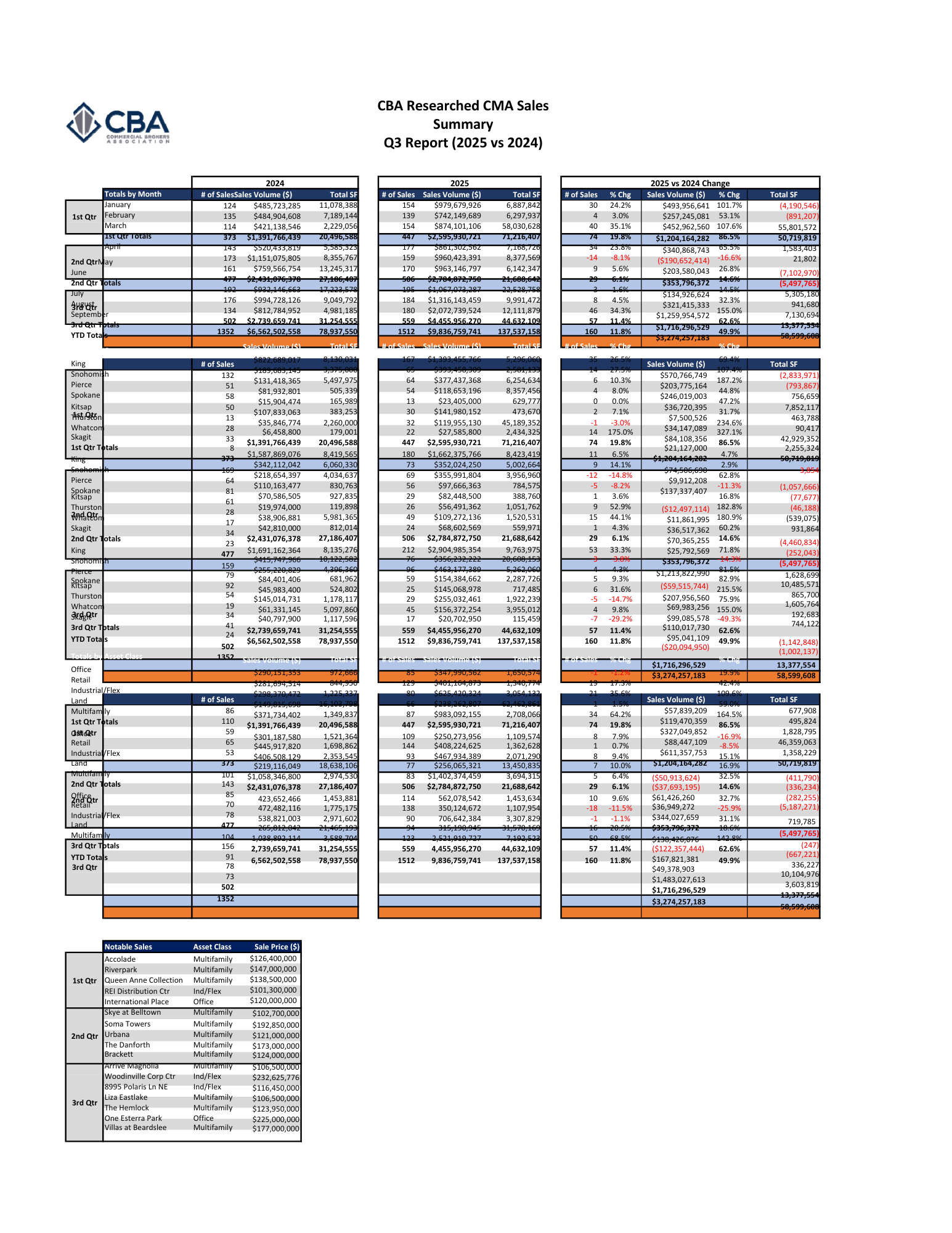 CBA’s Commercial Market Analysis (CMA) Sales Report analyzes yearly and quarterly economic and commercial real estate sales activity and trends at the market and submarket levels. Our quarterly report provides a detailed look into Washington’s commercial property sales market.