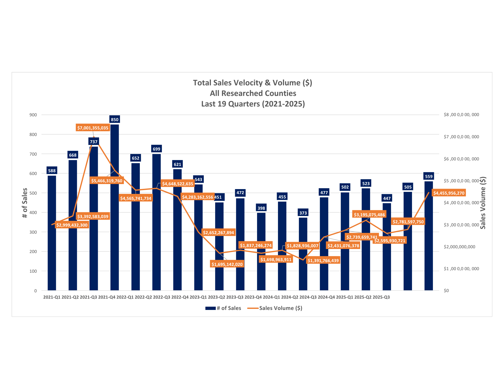 - Q3-2025 marked the highest quarterly sales volume since Q2-2022 and highest number of sales since Q3-2022.