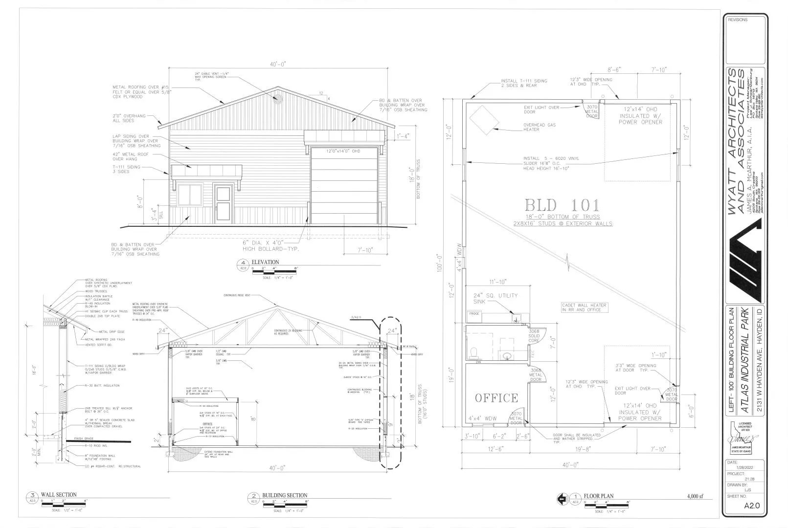 +"PublicRemarks": "Located in Hayden, Idaho, Daugharty Commerce Park will feature 42 buildings at full buildout, offering flexible opportunities for a variety of users. Positioned just off Dakota Avenue and Atlas Road, and near Coeur d'Alene Airport, the site provides convenient access within a rapidly growing North Idaho corridor.BUILDING DETAILS42 TOTAL BUILDINGS | Total based upon completion of final phase of developmentTWENTY (20) BUILDINGS | ±2,400 SF (40ft x 60ft)TWENTY (22) BUILDINGS | ±4,000 SF (40ft x 100ft)EACH BUILDING- Two (2) 14ft x 12ft roll up doors- One (1) front office- One (1) restroom- One (1) kitchenette (non-enclosed)- Three (3) man doors- Paved yard area- Ceiling height 18ft- Power: Single Phase 400amp- Parking: Three (3) regular stalls, One (1) handicap stall"