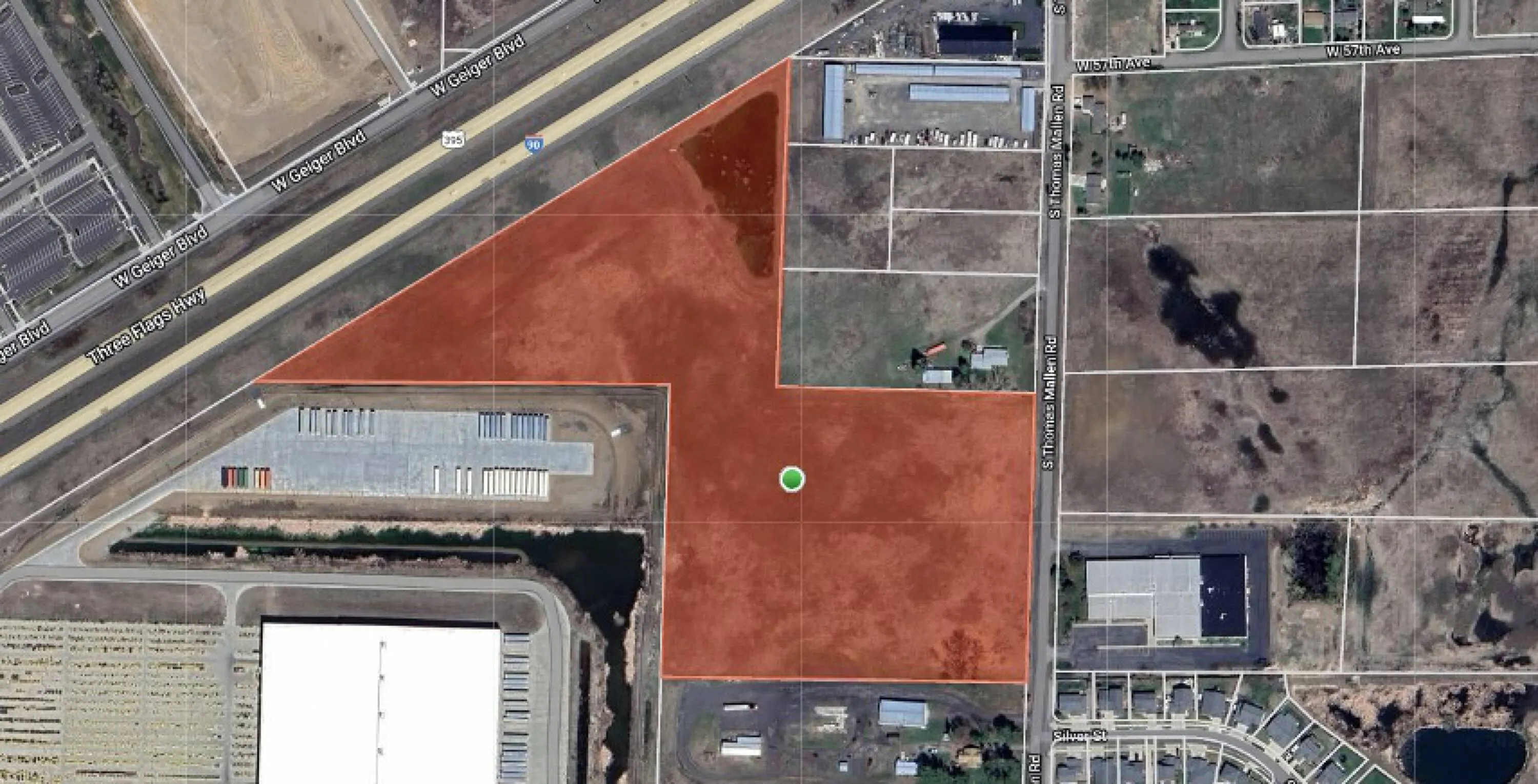 +"PublicRemarks": "Total Lot Size: ±21.48 AcresParcel No: 24064.9055Zoning: Light Industrial±1,300 feet of I-90 frontage±600 feet of frontage on Thomas Mallen Road1.5 miles from the Aero Road ExitLess than 3 miles from the Grove Road Exit4 miles from the Spokane International Airport9 miles from Fairchild Airforce Base2.3 miles from The Plains Golf Course100’s of new homes within a 2.5 mile radiusNeighboring businesses include Caterpillar to the South and anAmazon fulfillment warehouse directly across the freeway"