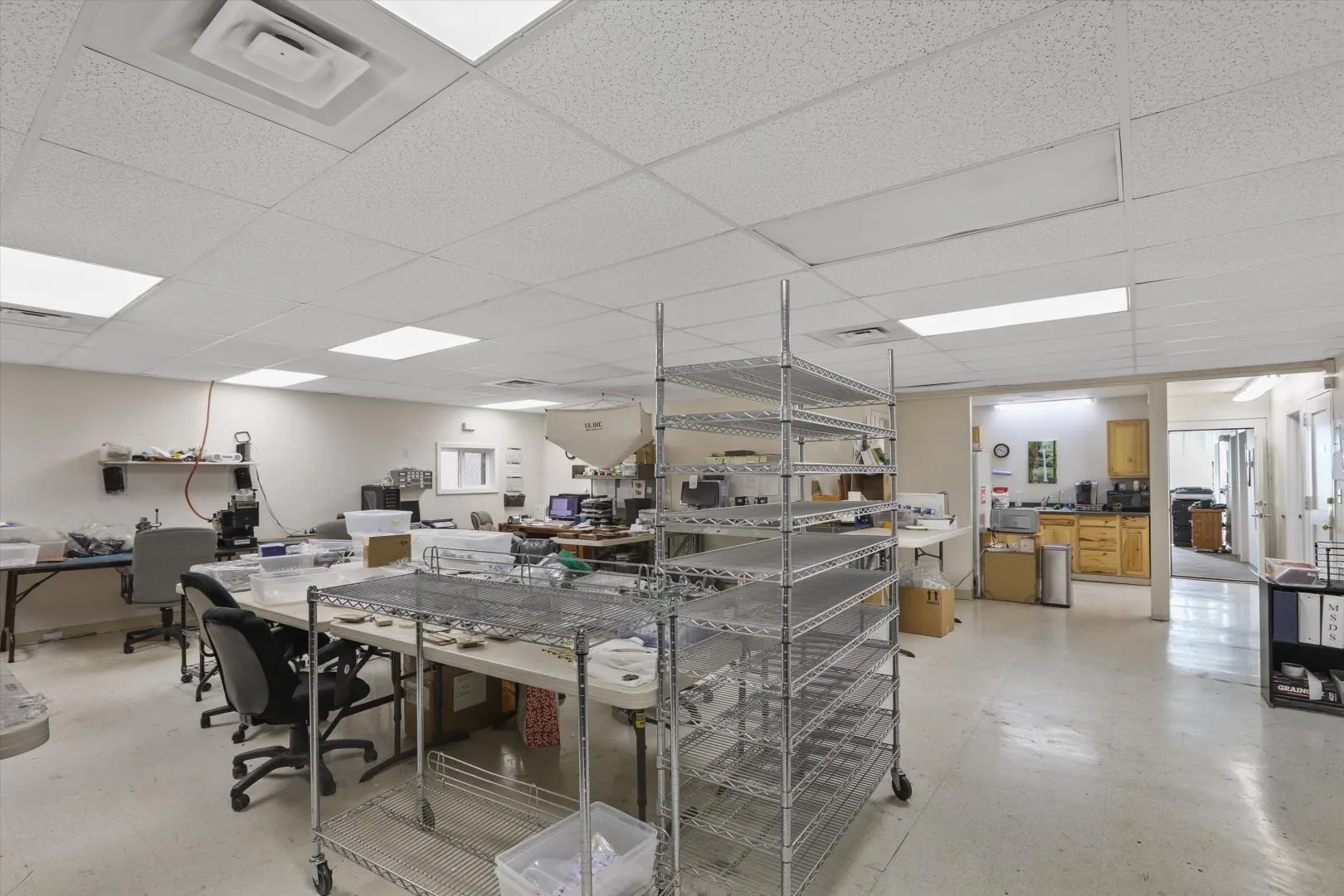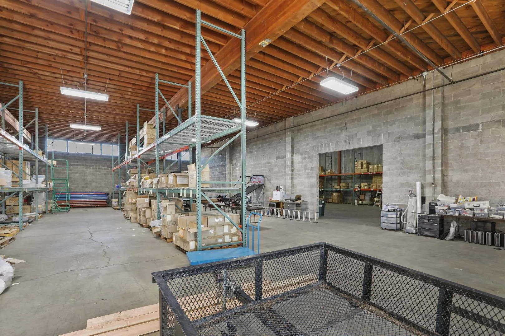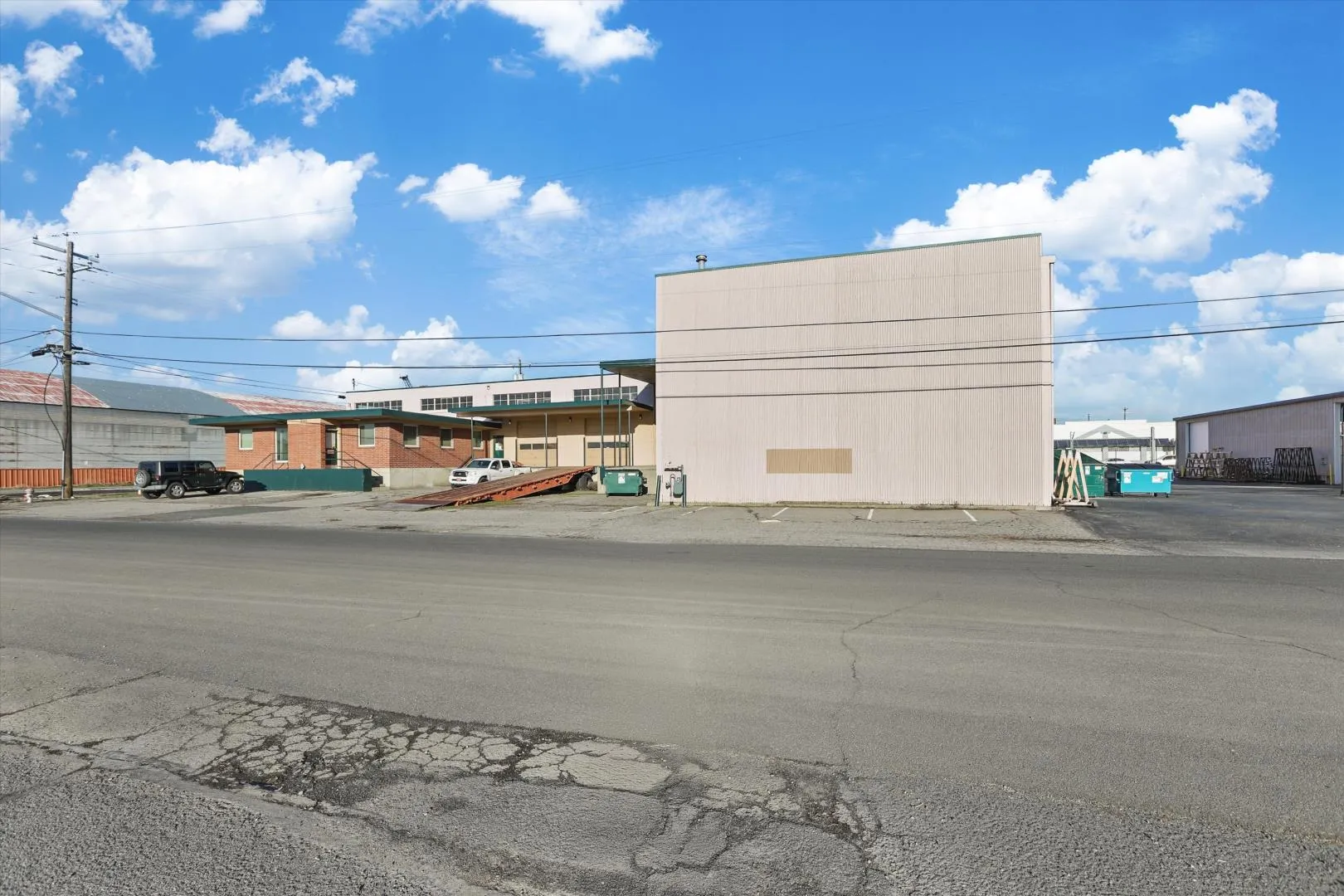 +"PublicRemarks": "This commercial warehouse of approximately 15,000 sq ft offers a versatile blend of industrial and professional space in a prime industrial area. The building includes 1,300 sq ft of office space featuring two private offices, a meeting room, two bathrooms, and an open area outfitted with cubicles, ideal for administrative or team operations. The warehouse portion boasts 17- and 21-foot ceilings and two 10 ft roll-up doors, providing ample vertical storage and operational flexibility. The additional warehouse space has a metal tilt-up roof as well as a 12 ft roll-up door. Constructed of durable brick and cinder block, this main warehouse is equipped with a newer flat membrane roof and a loading dock, making it well-suited for logistics, distribution, or light manufacturing needs. This prop"